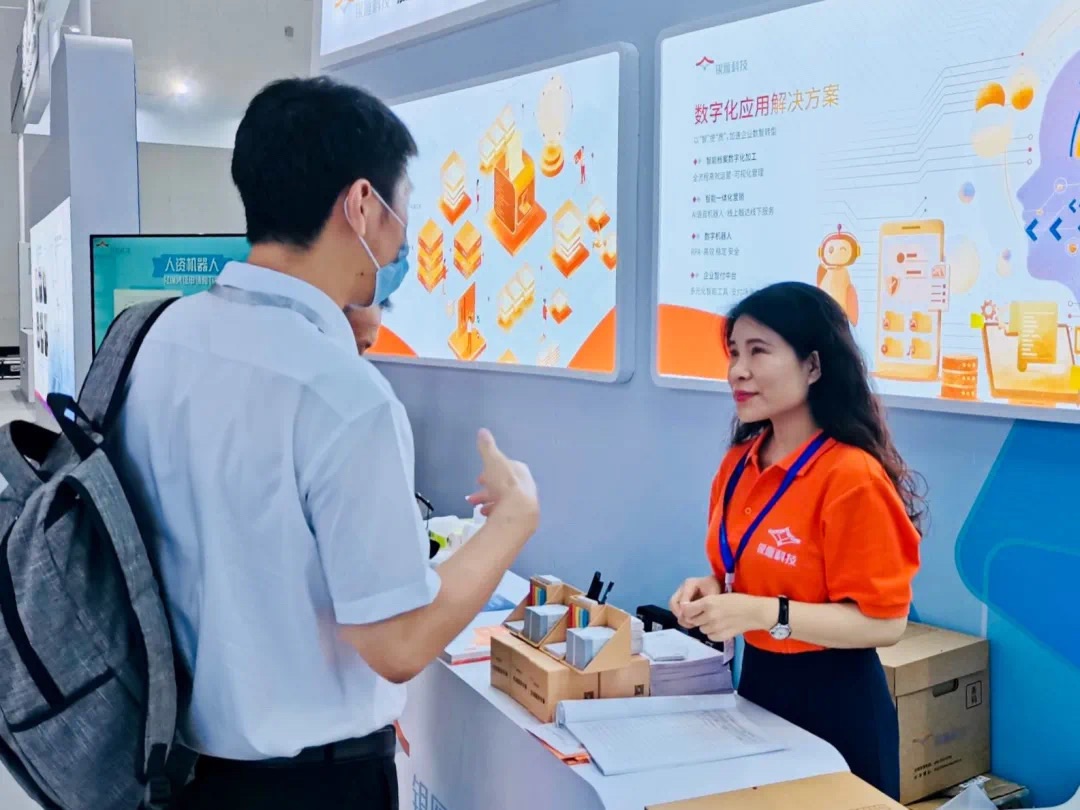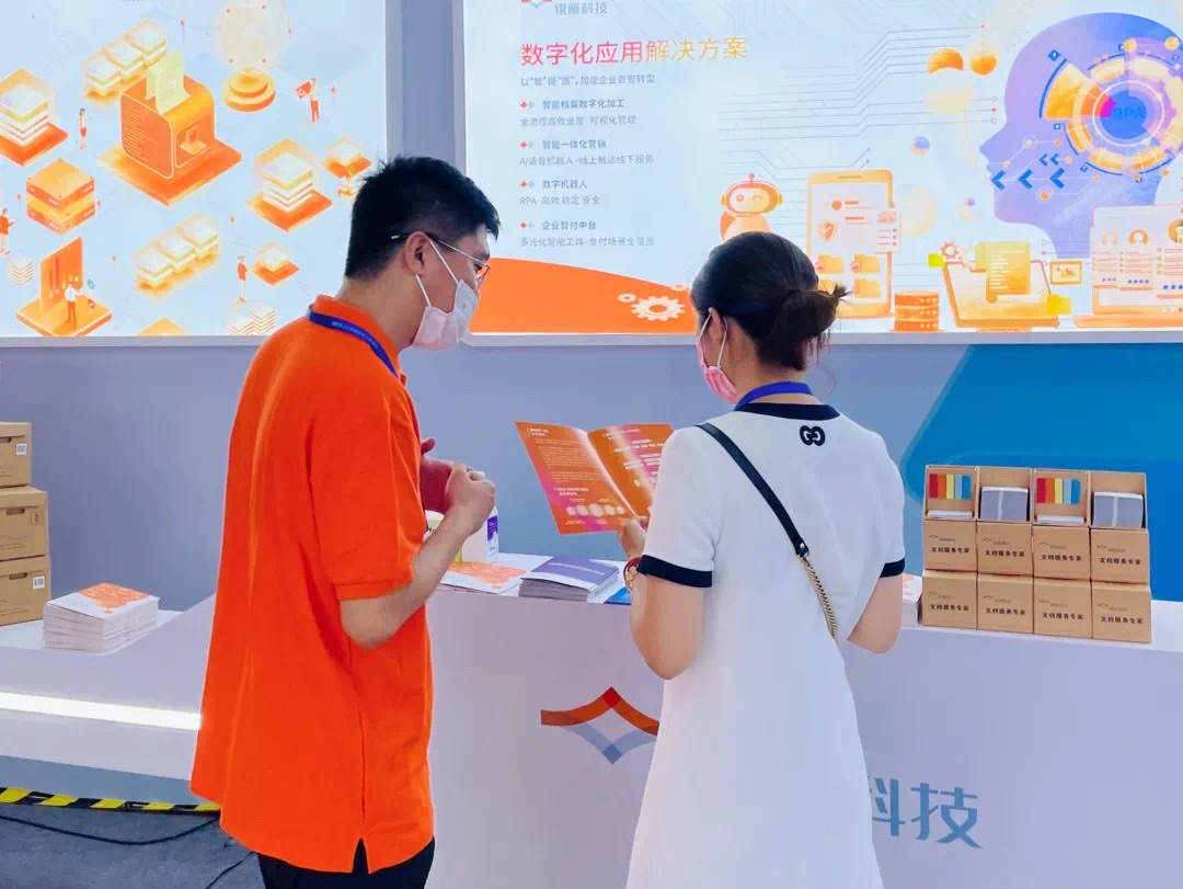 本屆中國數交會圍繞“數字服務,創新未來”為主題分享創新理念、展示建設成果,500家來自國內外的知名企業機構帶來數字技術前沿應用案例和產品。銀雁科技在本場盛會中展示了數字化應用解決方案,該方案包括智能一體化營銷、企業支付中臺、數字人民幣支付平臺、數字機器人和檔案數字化加工,為企業前端營銷、中臺建設和后臺管理提供全方位支撐。