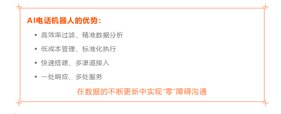 客戶服務(wù)中心是企業(yè)與客戶直接溝通的橋梁。“AI電話機(jī)器人”將“人”與“流程”“IT”相結(jié)合,替代人工客服的簡(jiǎn)單、重復(fù)工作,提升人工客服的服務(wù)能力,有效解決時(shí)效性和信息準(zhǔn)確性等問(wèn)題。